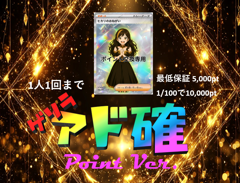 ガチャを回すにはポイントが必要です。. ポイントを購入してください.